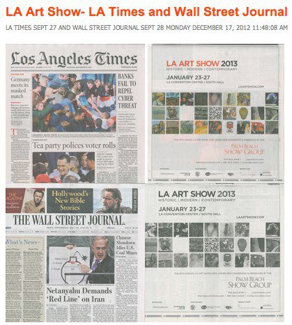 LA Art Show 2013 in the press News|January 3, 2013 I’m taking part of the LA Art show 2013. There is a lot of media and news around this show as one of the most anticipating shows of the year. Leave a Reply Cancel replyYou must be logged in to post a comment